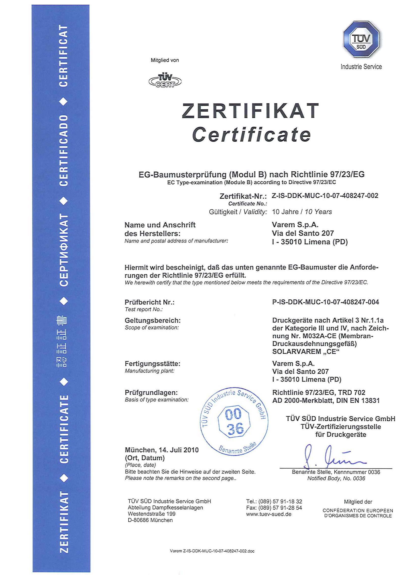 Expanzná nádoba pre solárne systémy. Absorbuje zväčšovanie objemu vody v systéme vplyvom jej zohrievania a kompenzuje zmenšovanie objemu vplyvom jej chladnutia. Tým udržuje rovnomerný tlak v systéme a chráni armatúry a spotrebiče pred tlakovými rázmi. Veľkosť nádoby: 50 l Max. pracovný pretlak: 10 bar Pretlak v nádobe od výroby: 2,5 bar Rozsah pracovných teplôt: -10°C až +130°C krátkodobo Príruba: nerezová Vak: fixovaný, nevymeniteľný Farba: červená Rozmer nádoby, O priemer x výška [mm]: O 380 x 620 Pripojovací závit: 3/4“